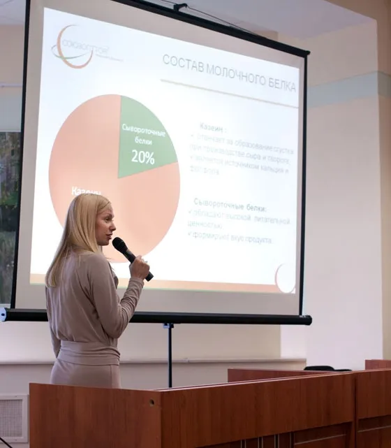 Одна из задач корпоративного семинара – повышение уровня профессионализма сотрудников. Технологи ГК «Союзоптторг» выступили с докладами по каждому отраслевому направлению, сделав акцент на нюансах использования пищевых ингредиентов, прокомментировали непростые моменты.