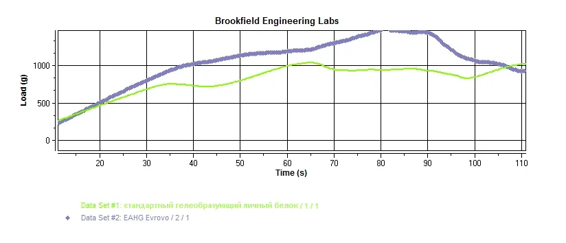 Более того, ингредиент Eurovo превосходит по силе геля и другие гелеобразующие белки, представленные на российском рынке. Это подтверждается, в том числе, и результатами лабораторных испытаний.