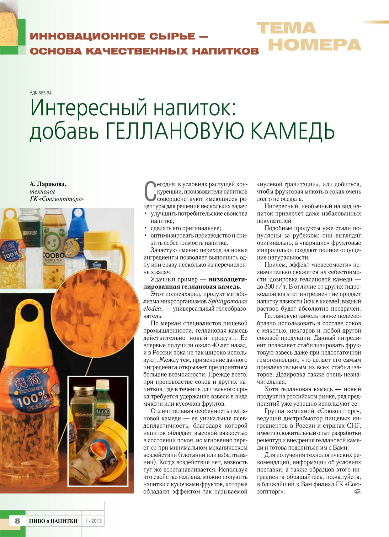 Группа компаний «Союзоптторг», ведущий дистрибьютор пищевых ингредиентов в России и странах СНГ, имеет положительный опыт разработки рецептур и внедрения геллановой камеди и готова поделиться им с Вами.