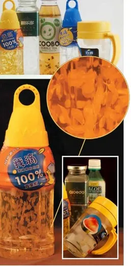 Используя это свойство геллана, можно получить напитки с кусочками фруктов, которые обладают эффектом так называемой «нулевой гравитации», или добиться, чтобы фруктовая мякоть в соках очень долго не оседала.
