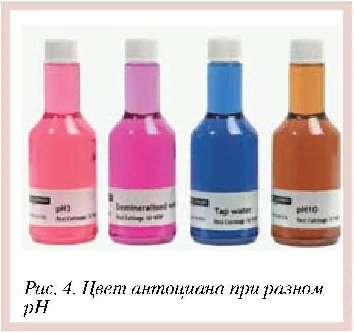 Оттенок, который придают антоцианы, меняется от красноватого при низком рН до голубого с повышением этого показателя (рис. 4). Чем выше рН, тем нестабильнее антоцианы.