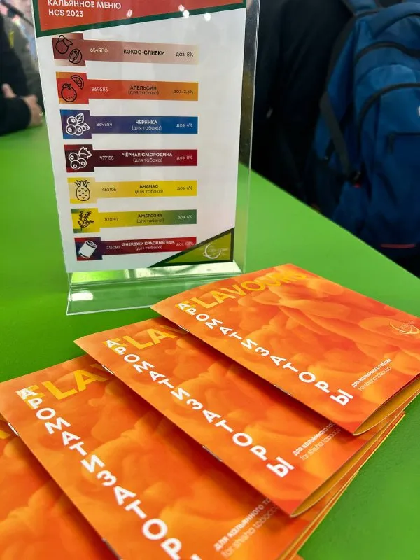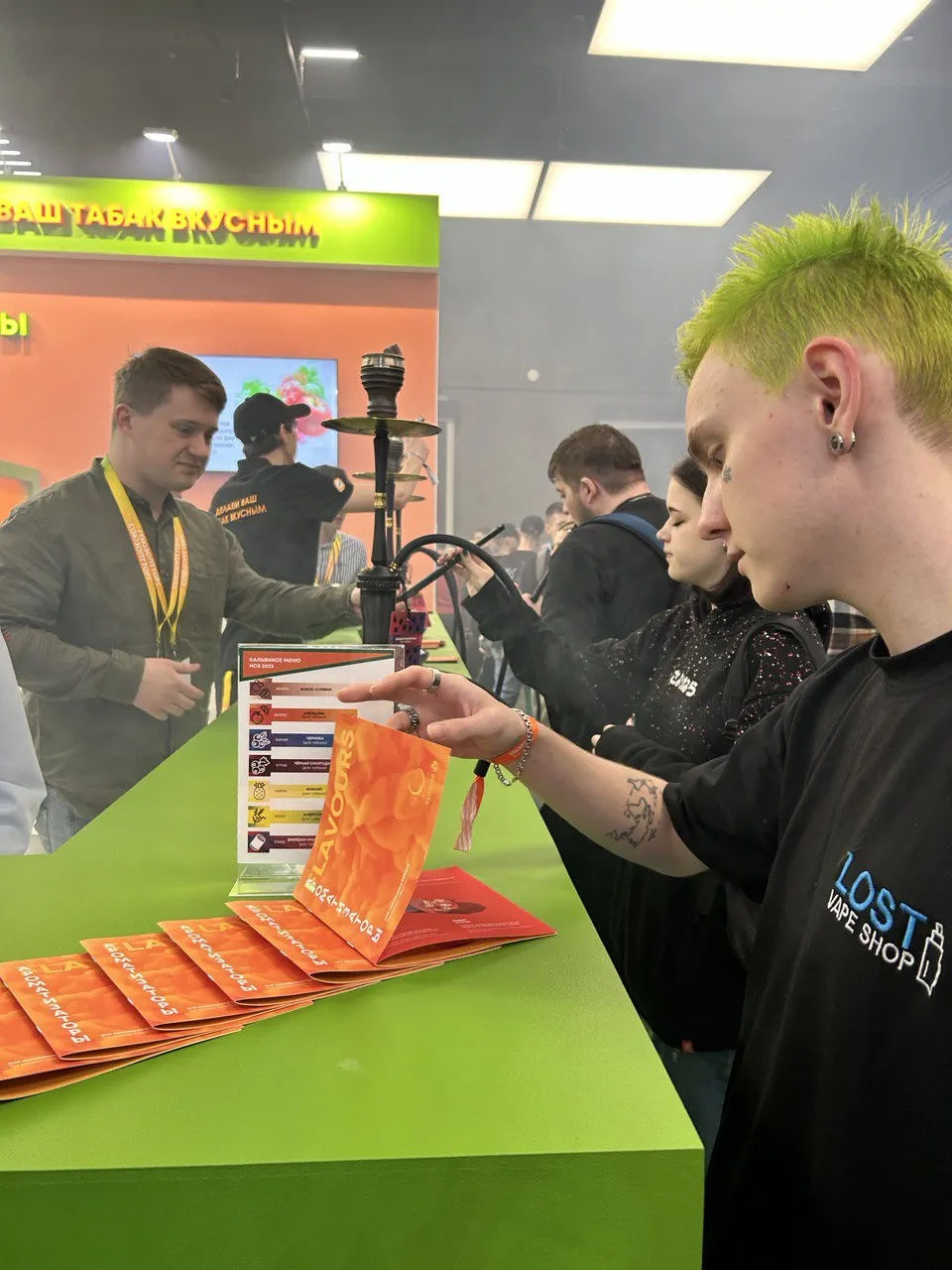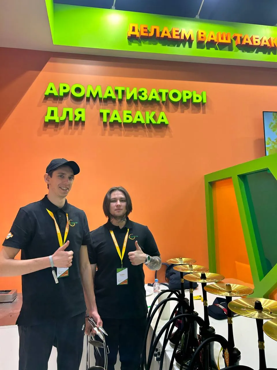 Часть из них все желающие могли попробовать в рамках кальянного меню. На стенде присутствовали представители разных филиалов, готовые оказать помощь в подборе необходимого ароматизатора представителям кальянной индустрии. Посетители смогли ознакомиться с популярными классическими вкусами малины, черники, ананаса, а также попробовать, например, новый вкус амброзии с насыщенным кисло-сладким дынным ароматом.